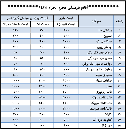 1 - ثبت نام و دریافت هزینه أقلام فرهنگی در قم و تحویل در منطقه ی تبلیغی می باشد.